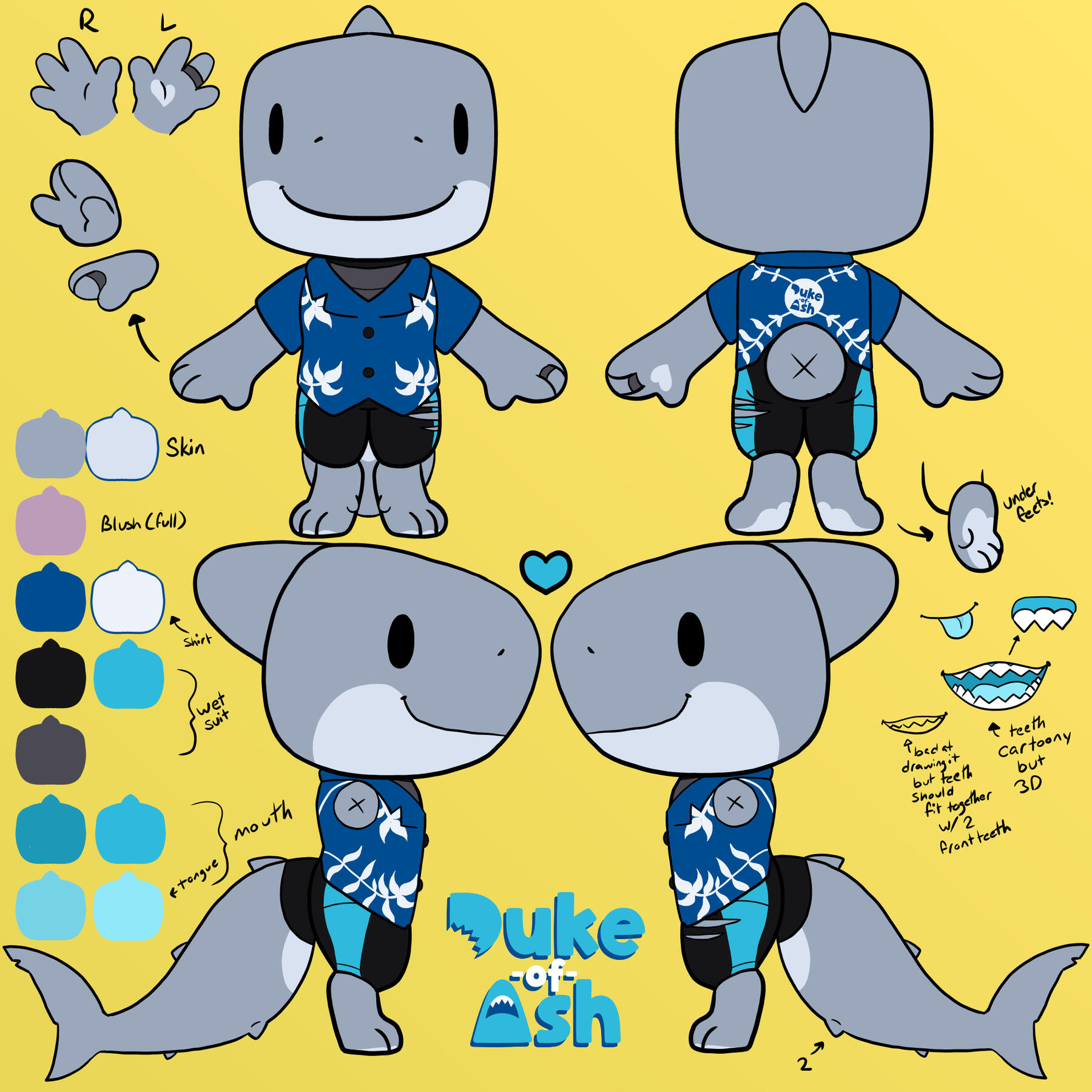 If you want to post fanart, you can post it on Twitter/Tumblr using the hashtag #DukeofArt or in the DiscordPlease do not draw nsfw of the shark including "artistic nudity"